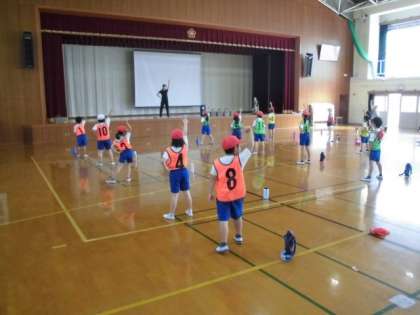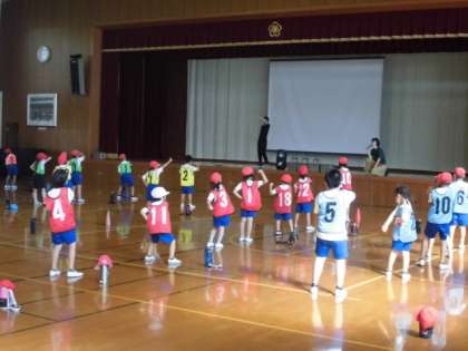 2年生もスポーツフェスティバルに向けて練習を始めています。教えてもらった振付けを曲に合わせて踊ります。なかなか覚えられなくても周りの友達と一緒ならだんだんとできるようになっていました。中には、リズムに乗って踊れている子もいました。