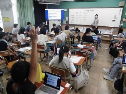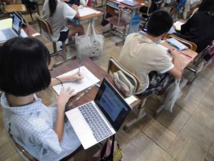 総合の時間には、観光客の様子について資料から読み取ることにしました。令和元年には、たくさんの観光客がいろんな場所を訪れていたのに、ここ2年間は感染症の影響もあって、すごく少なくなっていました。そのことが社会にどのような影響を及ぼしているのか考えました。