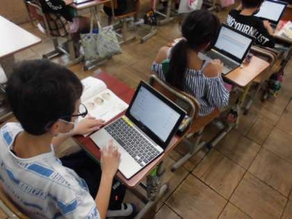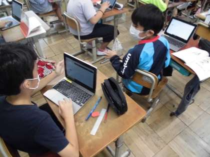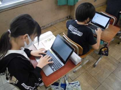 自分が知りたいことを調べる方法の1つに「アンケート」があります。国語では、周りの人はどう考えているのだろうか気になったことについてアンケートを取って調べることにしました。今回は、タブレットを使ってアンケートを作りました。アンケートに答えやすいように選択肢を作ったり質問の仕方を工夫したりしていました。できたアンケートについては、次々と答えてもらっていました。どんな結果が出るのか楽しみです。