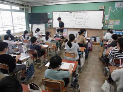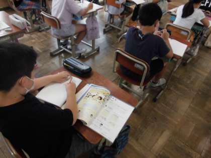 2つのチームに分ける時、うまく分けられる時とそうでない時があります。今日の算数では、2で割り切れる数を「偶数」、割り切れない数を「奇数」ということを知りました。その後、早速、練習問題に取り組んで偶数か奇数か答えていました。