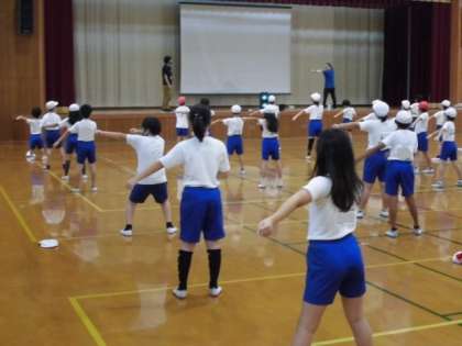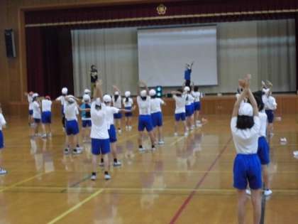 今日の体育もダンスの練習です。曲の感じもつかめてきたようで、音楽が流れると積極的に踊っている子がたくさんいました。今日は、腕の動かし方は何回がいいか?左右どちらから動こうか?など動きを試してみたり相談したりしながら決めていきました。