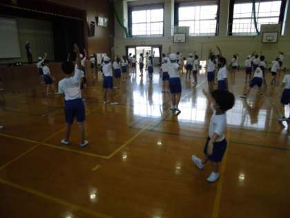スポーツフェスティバルに向けて練習が進んでいます。今日も1時間目から団体演技の練習です。曲を流すと覚えているところまで自然と体が動いてしまうぐらいよく覚えています。新しい動きを覚える時には、先生が教えてくれるポイントをよく聞いて、練習していました。みんなで動きがそろうとよりかっこいいです。