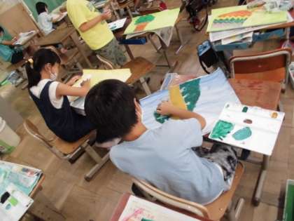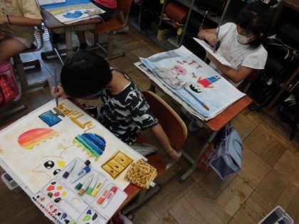 3年生もお話の絵に取り組んでいます。下絵もできたので、絵の具で色を塗っています。水の量や塗り方を工夫することでいろいろな感じが出せます。自分が表したい様子に近づけるように考えてから塗るようにしていました。