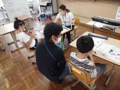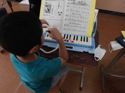 音楽の時間には、鍵盤ハーモニカやリコーダーの演奏をしました。音符はそれぞれ音の長さが違うことを確かめた後、指づかいに注意して演奏していました。1つ1つの指づかいは分かったのですが、音が変わるタイミングで思い通りに指を動かすことが難しそうでした。