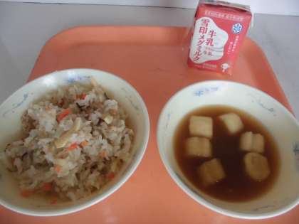 「『炊きこみ五目ごはん』は,『みそ汁』と一緒に食べておいしかったです。」と,感想をくれました。