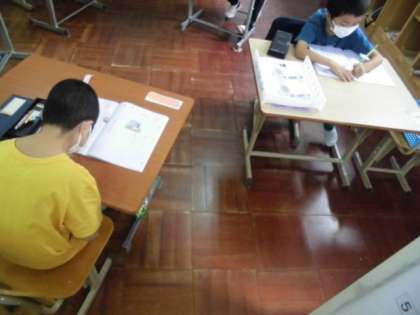 今日の国語では、漢字の学習ノートを使って新しい漢字を練習しました。書き順に気を付けて書いたら、読み仮名や使い方も練習しました。静かな雰囲気で集中して取り組んでいました。