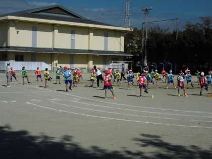 運動場で練習