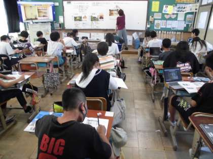 6年生の社会では歴史を学習していますが、今日は室町時代の文化について金閣と銀閣を見比べてみました。同じ時代の建物ですが、一方は金色で豪華ですが、もう一方は地味で質素な印象を受けます。このような違いが生じた理由を探るべく、学習問題を設定していました。