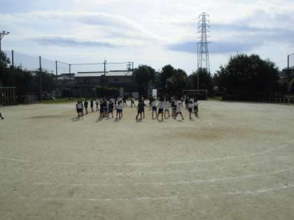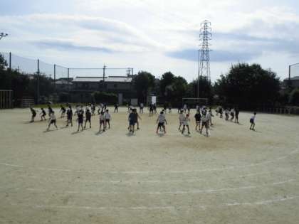 6年生はスポーツフェスティバルで団体演技を行います。今日は運動場に出て、体形の確認をしました。どのタイミングで移動するのかどちらを向くのかなど踊り以外にも覚えることがいくつかあります。周りと動きを合わせることも大切にしてほしいです。