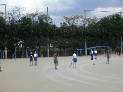 いよいよ明日は梅北っ子スポーツフェスティバル。6時間目に6年生が会場の準備をしてくれました。応援席の設置、地面の整地、開会式の練習と、それぞれの役割に分かれて、お互いに声を掛け合いながら、テキパキ動いていました。最高学年としての素敵な姿を見せてくれました。これまでもエールや放送、各学年の見どころポスターの作成など、準備を進めてくれた6年生。明日は6年生が活躍する一日になります。