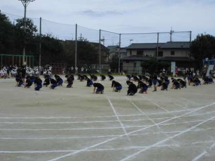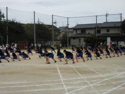 6年生は団体演技「ソーラン節」を披露してくれました。グループごとに相談したり放課後に残って練習したりとこれまで努力してきました。そのおかげで覚えた振付けでダイナミックに動けるようになったので、見ごたえがありました。動きをそろえ、気持ちをそろえ、みんなで踊ったソーラン節はとてもよかったです。