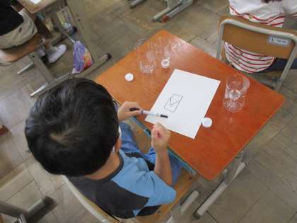3年生は図画工作科の授業で、空きペットボトルを使って生活の中で使うものを作る学習に取り組み始めました。今日は自分が使いたい場面を想像しながら、使いやすい高さでペットボトルをはさみで切ったり、模様や飾りを考えたりしました。使うのが楽しくなるように想像を膨らませていました。