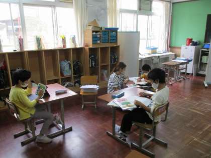 国語科の授業では、字形に気を付けながら漢字を書く、文章を読み取って課題に取り組むなど、それぞれの課題に取り組みました。できたときには、とてもうれしそうな笑顔を見せていました。