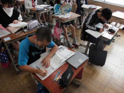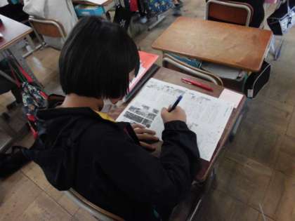 今日の国語では、鳥獣戯画という教材を使って、筆者が鳥獣戯画をどのように評価しているのか読み取るようにしました。表情や気持ち、動きなどからどんな評価をしているか分かったところに線を引いていきました。