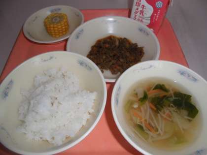 「『和風ドライカレー』は,ごはんにのせて食べたら,とってもおいしかったです。『カットコーン』は,甘くておいしかったです。」と,感想をくれました。
