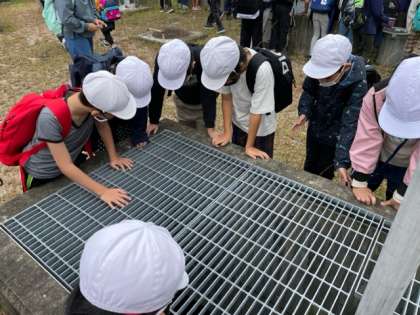 今日は曇り空で過ごしやすい中、4年生は社会見学に出発しました。蹴上浄水場に着くと水をきれいにする仕組みを教えてもらいました。