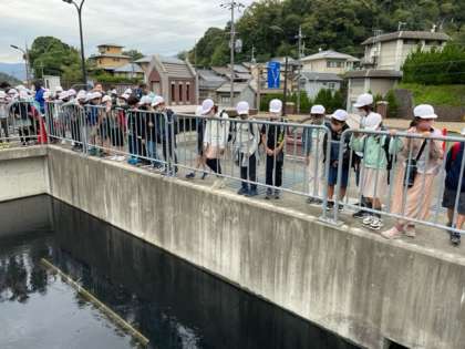 水をきれいにするためにとても広い池がありました。ゆっくり混ぜながら汚れを大きくして沈めるそうです。その仕組みに驚いていました。