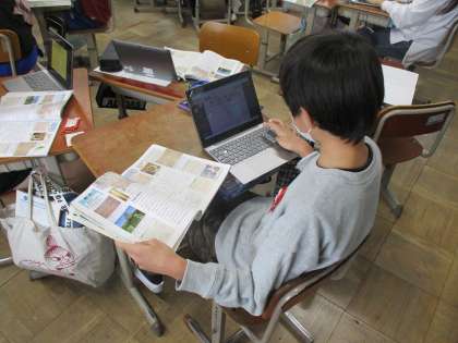 今日は戦国時代の織田信長、豊臣秀吉から一人を選び、グループで調べ学習を進めました。様々な資料を読み取り、調べたことをタブレットに打ち込んで、グループで情報共有しながら、何時間かかけて選んだ武将のどんな業績が戦国の世を終わらせたのかについて調べていきます。