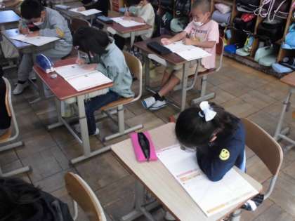 今日の道徳では「お月さまとコロ」というお話から、素直にあやまるためにはどんな心が大切なのか考えました。主人公が謝るかどうか迷っている様子からどうすればいいのか意見を出し合いました。結局「友達になるため」や「自分が悪いから」など自分のためにもなるので謝ろうと思ったのかなと考えていました。最後には、自分の生活を振り返って、これからは素直に謝りたいことを書いていました。