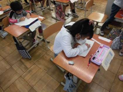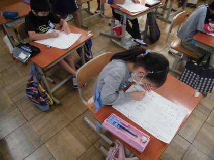 今日は書写の学習をしました。まずは、「はる」「ふゆ」などの季節を表す言葉を丁寧に書きました。次に、小さな「よ」の書く位置に気をつけながら、文を書き写しました。集中した雰囲気で書いていると自分でも納得した字が書けたようで『先生、「ふ」が上手に書けた』と見せてくれました。