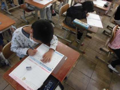 おじさんの乗っている電車に小学生の団体が乗り込んできました。「きっと、うるさくなるぞ。」と思っていたのに、子ども達は最後まで静かに乗っていました。その姿を見て、おじさんは自分の考えを反省するとともに子ども達へお手紙を書きました。今日の道徳は、そのお手紙の内容からみんなが気持ちよく過ごすためにはどんなことに気をつければいいのか話し合いました。これからはみんなが使う場所では、相手のことも考えて利用した方がいいと気づいていました。
