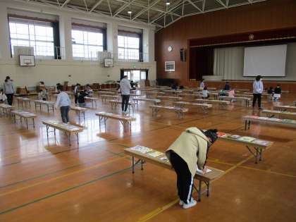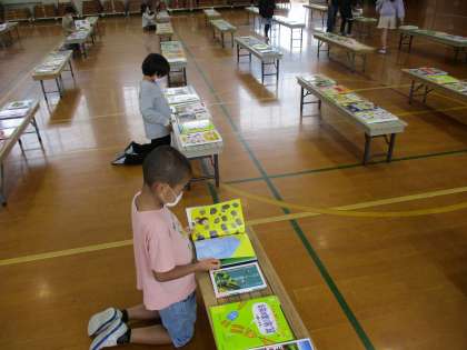最終日の今日は「選書会」を行っています。今年は3組・2・4・6年生の子どもたちが学校図書館で読んでみたい本を選んでいます。みんな本を手に取り、真剣に選んでいました。