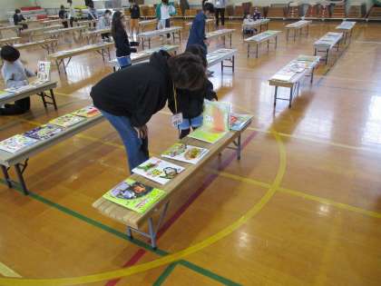 「もみじ読書週間」の取り組みの一環として行っている「選書会」。図書ボランティア「ありすのいえ」のかたにお手伝いに来ていただいています。子どもたちに声をかけ一緒に本を選んでいただいたり、子どもたちから聞かれたことに答えていただいたりしています。子どもたちが本に親しむお手伝いをしていただき、ありがとうございました。