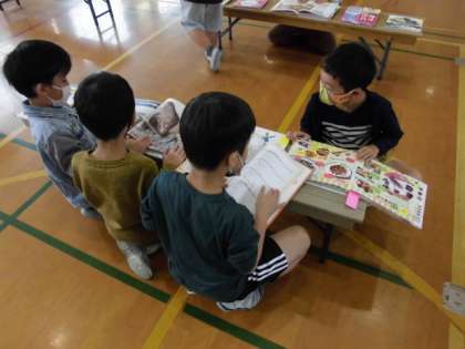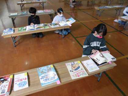 今日は体育館で「選書会」があります。2年生は1・2時間目に割り当てられているので、朝から早速しおりをもって行きました。まずは、たくさん並んでいる本の表紙をじっくり見ながら歩き、気になった本を手に取って少し読みます。もっと読んでみたいなぁと思った本にしおりをはさみました。自分の選んだ本が届くのか今から楽しみです。
