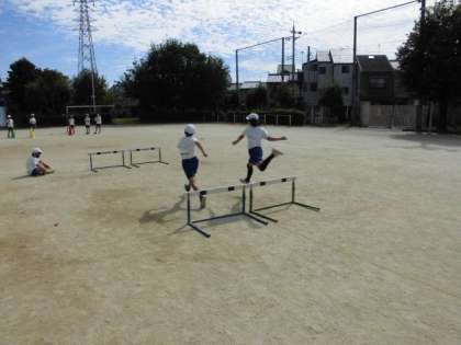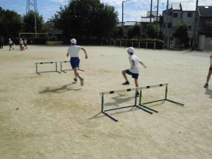 回数を重ねていくうちに学習の進め方にもずいぶん慣れてきました。スタートの合図やストップウオッチでの計測、さらにはハードルの位置の修正など、役割分担して学習を進めていました。その分、自分の記録に集中することができるようになってきたので、ハードルをいかに速くまたぎ越すか何度も挑戦していました。