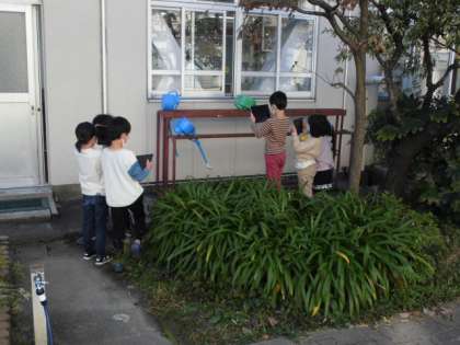 学校の中をよく見てみると、なんか顔に見えてくるものもあります。今日はタブレットを使って顔に見えるものを撮影しました。それに名前を付けてみんなに紹介しました。まるで友達を見つけたかのように嬉しそうでした。