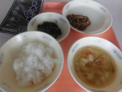 「『肉みそ納豆』は,納豆のにおいが苦手だけど,今日の給食は,とってもおいしかったです。『キャベツのすまし汁』は,だしの味がとってもおいしかったです。」と,感想をくれました。