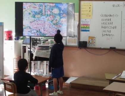 今日は世界のあいさつやあそびなどについて学習しました。日本では「おはようございます」とか「いただきます」のように毎日使うあいさつがあるように外国にもあいさつがあります。国や地域によって話す言葉が違うため、いろんな言い方があることを知りました。また、世界の昔話のイラストから日本にも馴染みのあるお話があることも知りました。