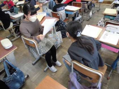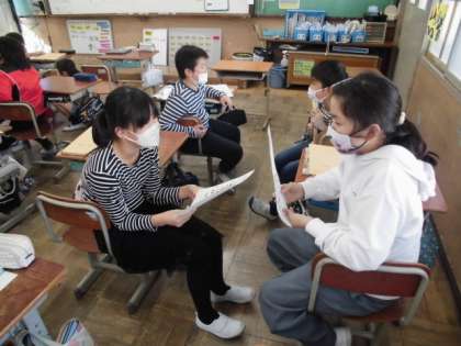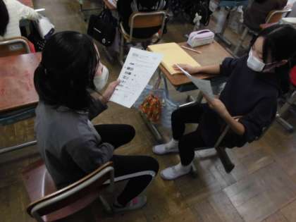外国語の時間には、自分の知っている国や行ってみたい国から選んで英語でクイズを出しました。訪れるとどんなことができるのか、どんなものが食べられるのかなどヒントとなることを順番に伝えていきます。初めはどこの国のことか分からなくても、「You can eat hamburger」とか「you can see 〜」と次々と出されるヒントをよく聞いていると、自分にも知っていることがあります。そこから連想して答えるようにしていました。