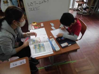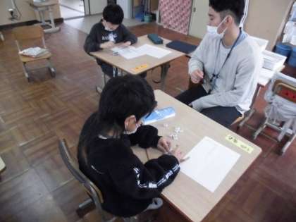 たし算やかけ算などいろんな計算に取り組みました。たし算では、数図ブロックの操作も慣れてきて素早く計算することができました。かけ算では、九九を思い出しながらスラスラと答えていました。