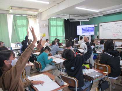 今日は、縮図を利用して、直接測定できない2点間の距離を求める学習をしました。