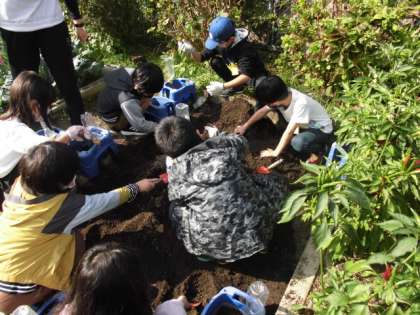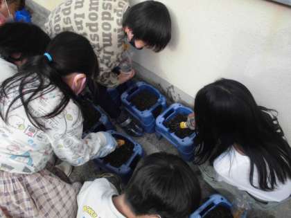 ミニトマトを育てていた植木鉢に今度はクロッカスを植えました。肥料を混ぜ込んだ土をスコップで植木鉢にいっぱい入れました。土をならしてから日当たりのよいところへ持って行きました。最後に水をたっぷりあげました。どんなふうに育つのか今から楽しみにしていました。