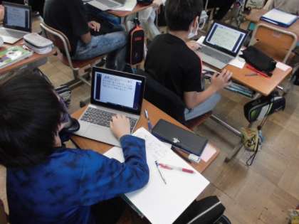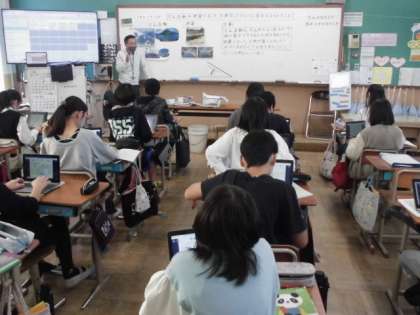 日本は世界の中でも比較的、地震の多い国です。今日の理科では、火山活動や地震によって土地の変化に様子について調べました。実際に火山が噴火することで1つの島ができたり、地震によって土地が隆起したりすることが分かりました。振り返りでは、学習で分かったことをロイロノートに入力して提出していました。
