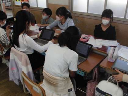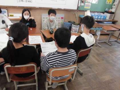 5年生はこれまで仕事について調べたり自分たちで立ち上げたりして活動してきました。自分たちのグループがどんな会社を立ち上げたのか、活動内容とともにそこに込めた思いや理由などを紹介します。今日は、本番の交流会に向けて、発表の練習をしました。