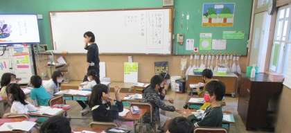 国語科の授業で、「せかい一の話」の読み聞かせを聞いて、自分がおもしろいなと思ったことを見つけました。子どもたちはお話の世界に引き込まれながら、内容や出てきた言葉、文体などそれぞれに面白さを感じていました。隣の友達と紹介しあって、自分の見つけたことを整理してからノートに書きまとめていました。
