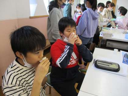 子どもたちは、昆布の出汁のうま味をじっくり感じながら飲んでいました。とても気に入り、「家でも昆布で出汁をとってもらおう」とつぶやく子もいました。