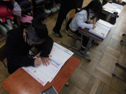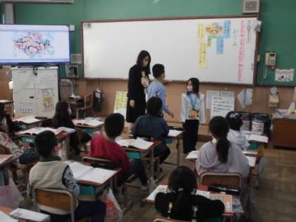 道徳では、みんなが気持ちよくすごすためにはどんなことが大切なのか考えました。並んでいる列に割り込んできた友達がいた時、「自分の後ろならいいかな」と思う自分と「わりこみはいけない」と思う自分に揺れ動く主人公の心情を通して、どうすればいいのか考えました。いろんな人のことを考えて行動することの大切さや良いことをすれば気持ちがいいことが分かりました。