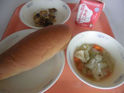 「『いわしのカレーあげ』は,外はカリカリで,カレー味でおいしかったです。『野菜スープ煮』は,あたたかくて,とってもおいしかったです。」と,感想をくれました。