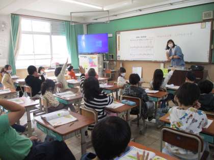 みんな初めて聴く曲でしたが、4拍子の曲であること、細かい音符のリズムで弾む感じがすることなど、じっくり感じ取り、しっかりと聞き取ることができていました。