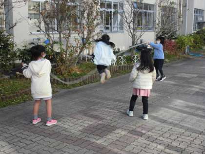 朝夕はとても寒くなり、冬本番です。それでも休み時間には元気に外へ出て、遊んでいる子がたくさんいます。中庭では、交代しながら大なわを跳んでいました。自分だけ楽しむのではなく、みんなで楽しめるように友達を気遣う姿が見られました。