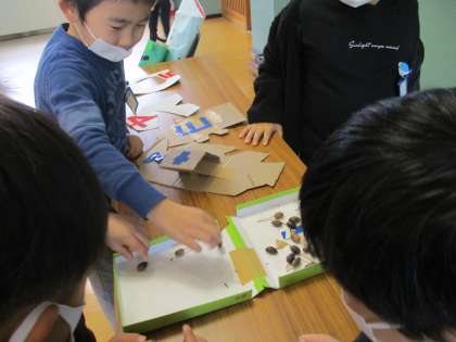 生活科「あきといっしょに」の学習で見つけたり楽しんだりした秋の思い出を「あきのわくわくフェスティバル」としてみんなで交流しました。