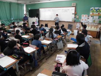15.6mのロープを8つに分ける時、1つは何mになるのか考えました。分けるためには、割り切る必要があります。筆算を使って計算していくと、途中で進めなくなりました。そんな時は「0」をつけたして計算していくといいことが分かりました。その後の問題では、小数点にも気をつけながら取り組んでいました。