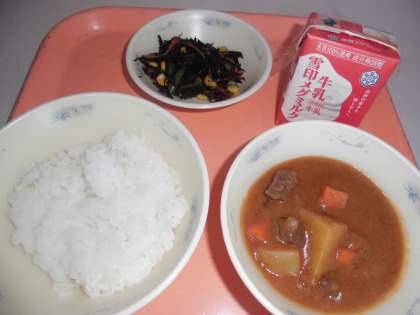 「『ビーフシチュー』は,とってもおいしかったです。『ひじきのソテー』は,コーンも入っていて,おいしかったです。」と,感想をくれました。