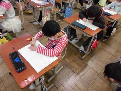 一人ずつ順番にバスに乗っていく時、何番目に乗るのか考えました。また、前に何人いるのかについても考えました。ややこしくならないように図をかいて考えるようにすると、分かりやすかったという感想が聞かれました。