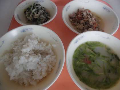 「『とりめし(具)』は,鶏肉に味がしみこんでいて,おいしかったです。『京野菜のみそ汁』は,白みその味がしておいしかったです。」と,感想をくれました。