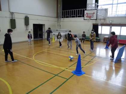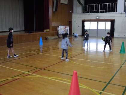 今日は6年生が1年生を体育館へ招待して、楽しい時間を過ごしました。体育で取り組んでいるころがしドッチボールやだるまさんがころんだ、しりとりなどのコーナーに分かれて一緒に遊びました。1年生も楽しめるように6年生が進めてくれました。